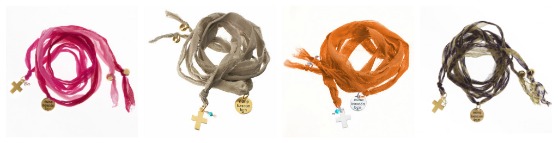 Todas las piezas estan hechas a mano utilizando sedas naturales de la india con pequeños charms en plata y oro chapado, cordones de cuero y piedras semipreciosas como la turquesa.