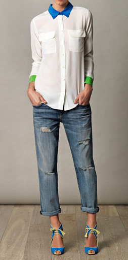 Este sin cuello es el modelo Kate Moss y ella las tiene en todos los colores que combina con un blazer y jeans.